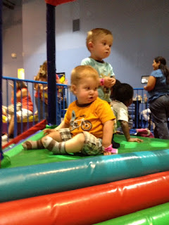 Our good friends and their 3 kids traveled down from chilly San Francisco to blazing hot San Gabriel for a quick weekend visit. Just like every other weekend this past August and September the temperature was in the high 90's. We planned to do a lot of our activities indoors in the air conditioning. We started out Saturday morning at the Natural History Museum. All the boys enjoyed roaming around the museum looking at the cool exhibits. From there we headed to Jumpin' Jammin' where the boys had a great time running around and getting all their energy out. Sam and Matteo loved playing in the toddler section. I loved watching them play and have fun.